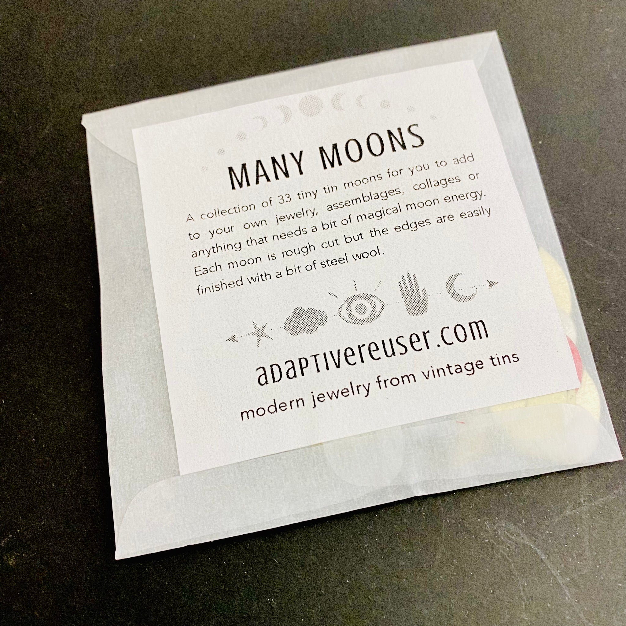 This little collection of crescent moons are all rough cut but easy to finish with a bit of fine steel wool. This package contains 33 little moons all 1” or smaller.