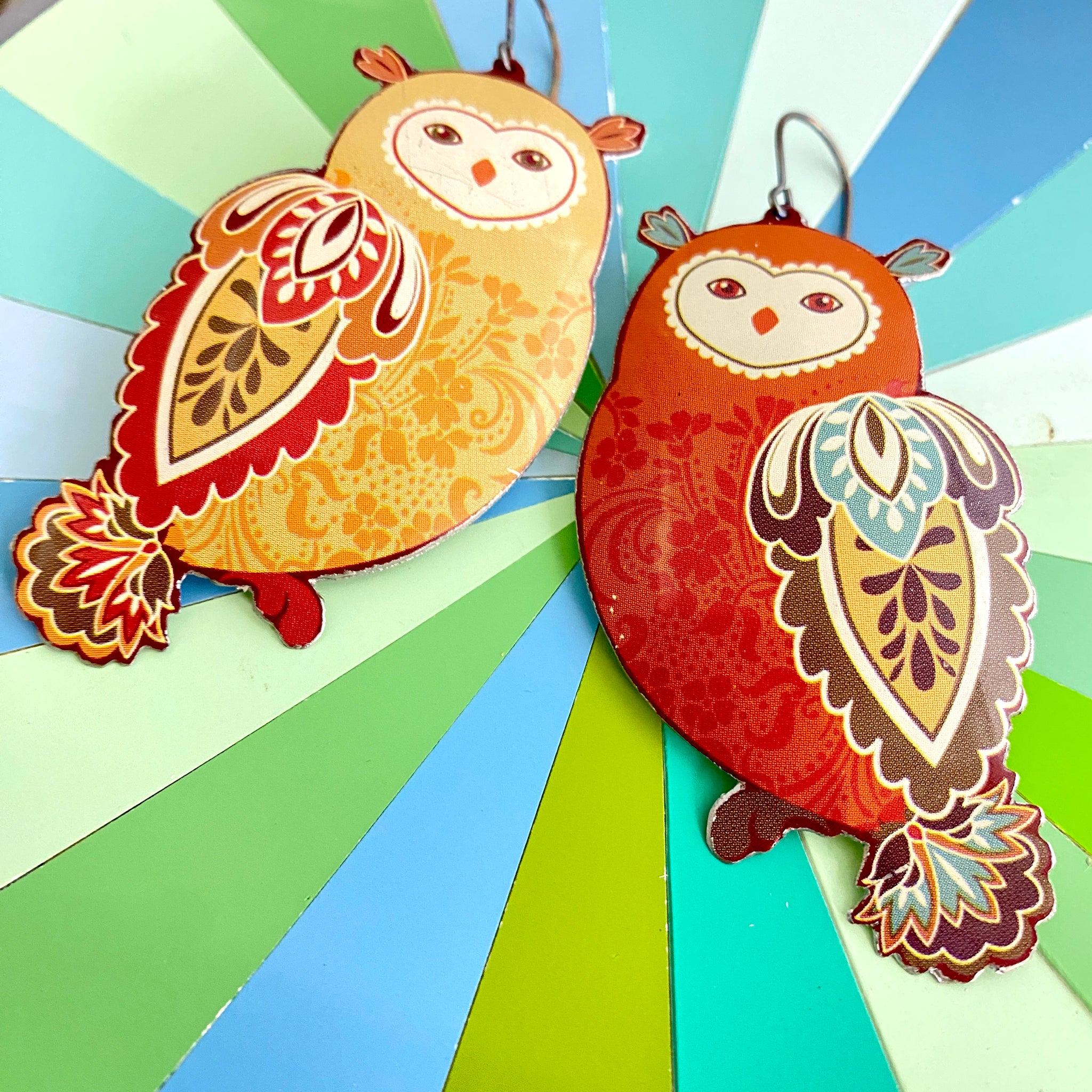 Each piece is hand cut, edges filed and finished smooth and a surgical stainless steel ear wire finishes the look.