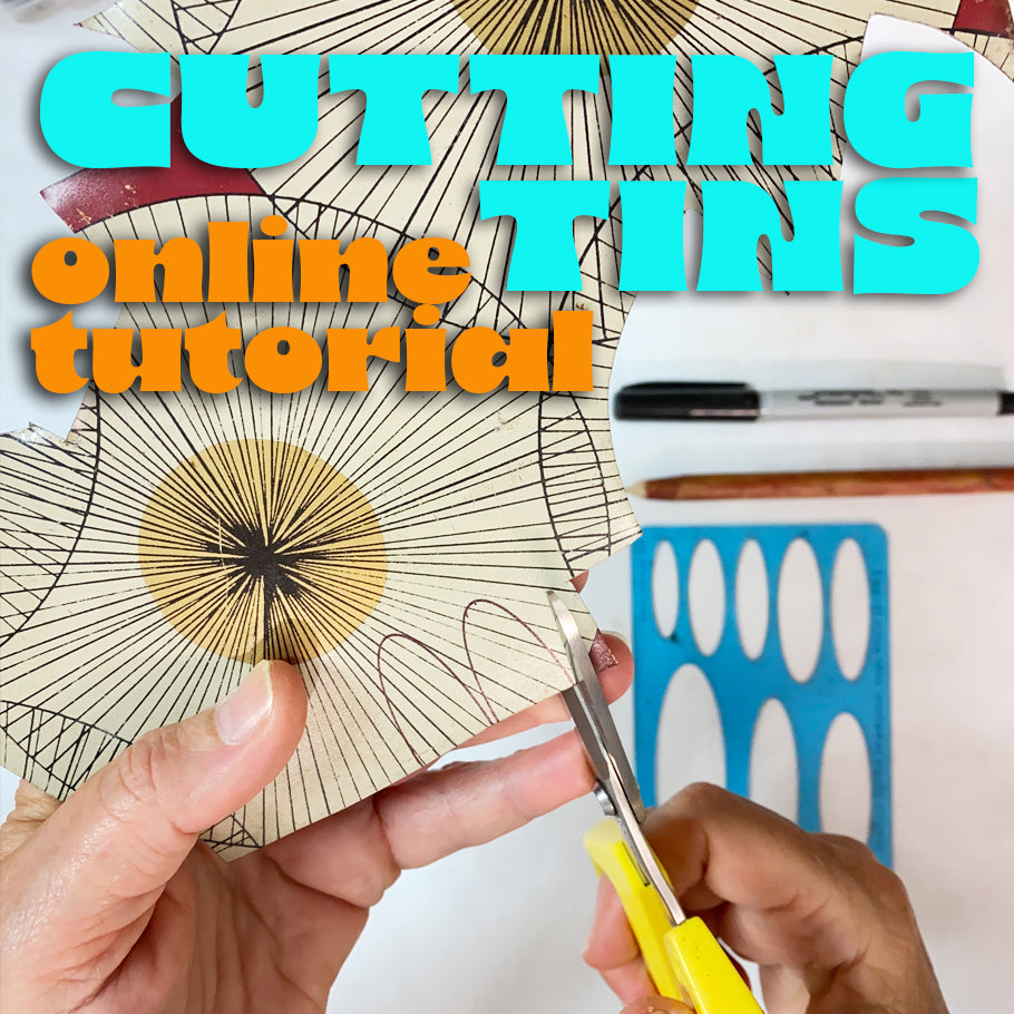 I will show you a couple ways I transfer lines to the tin for cutting. I demonstrate cut the tin into various shapes using scissors, tin snips, shape cutters and a jewelers saw. I share a bit about how to properly handle each of them and a few tips on what works for me.