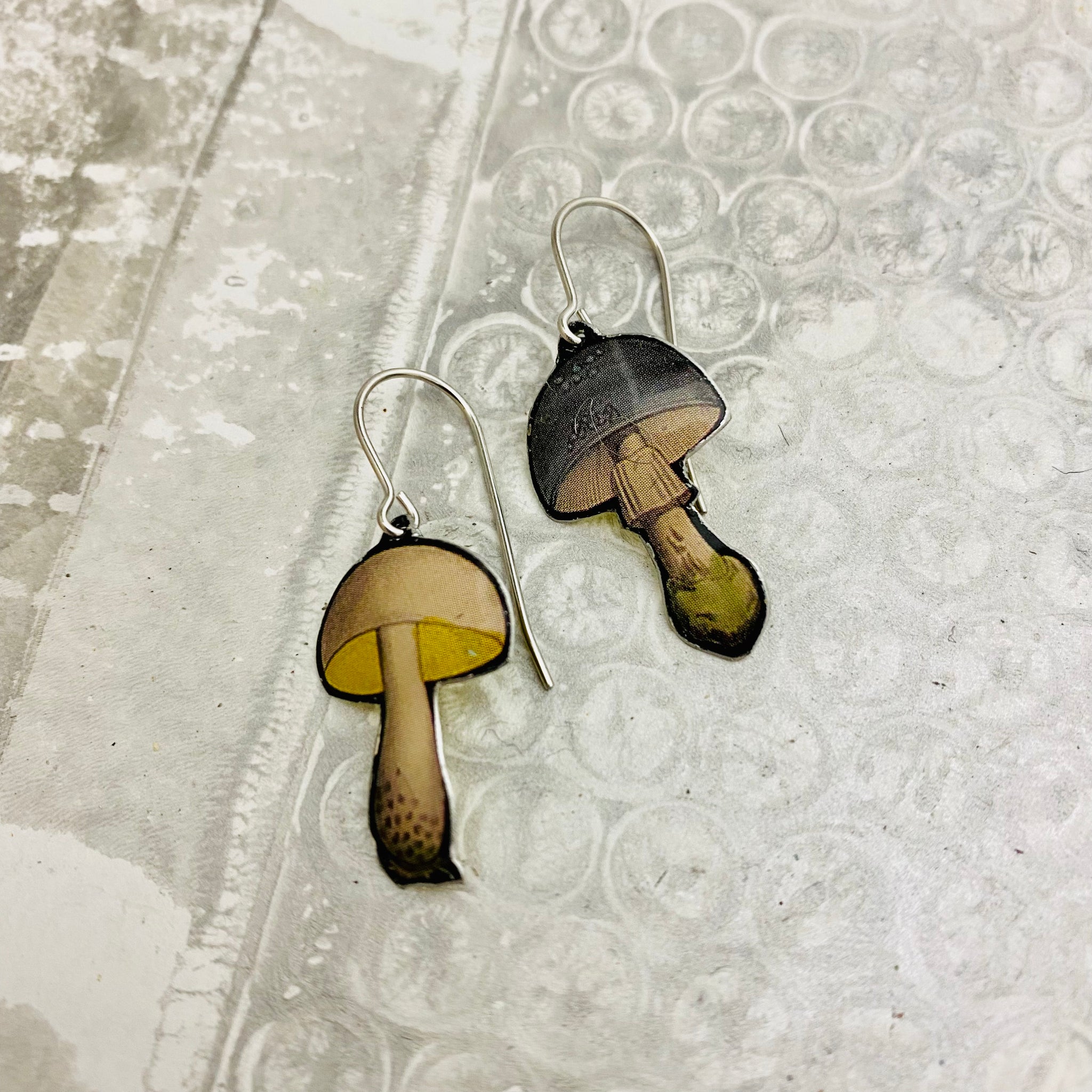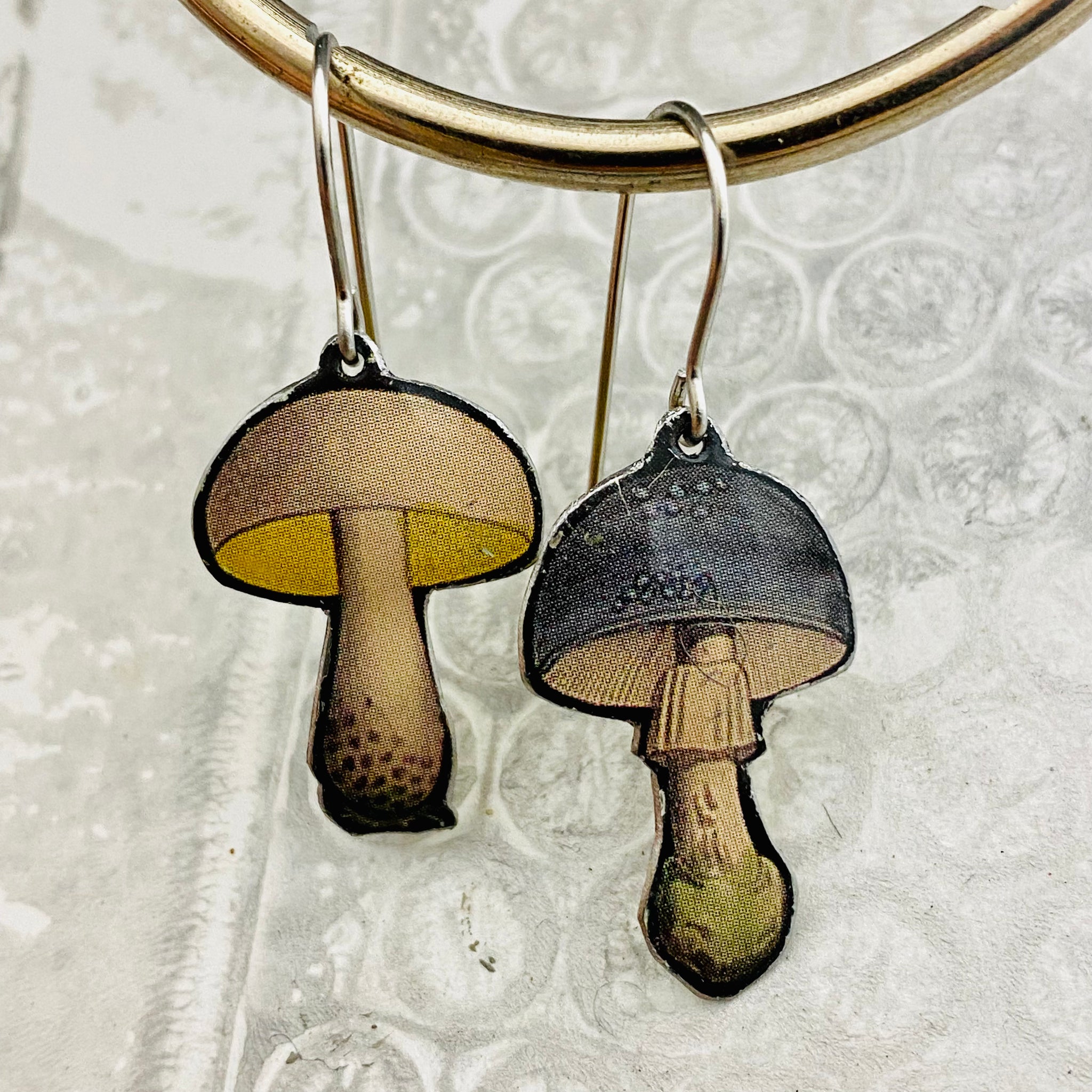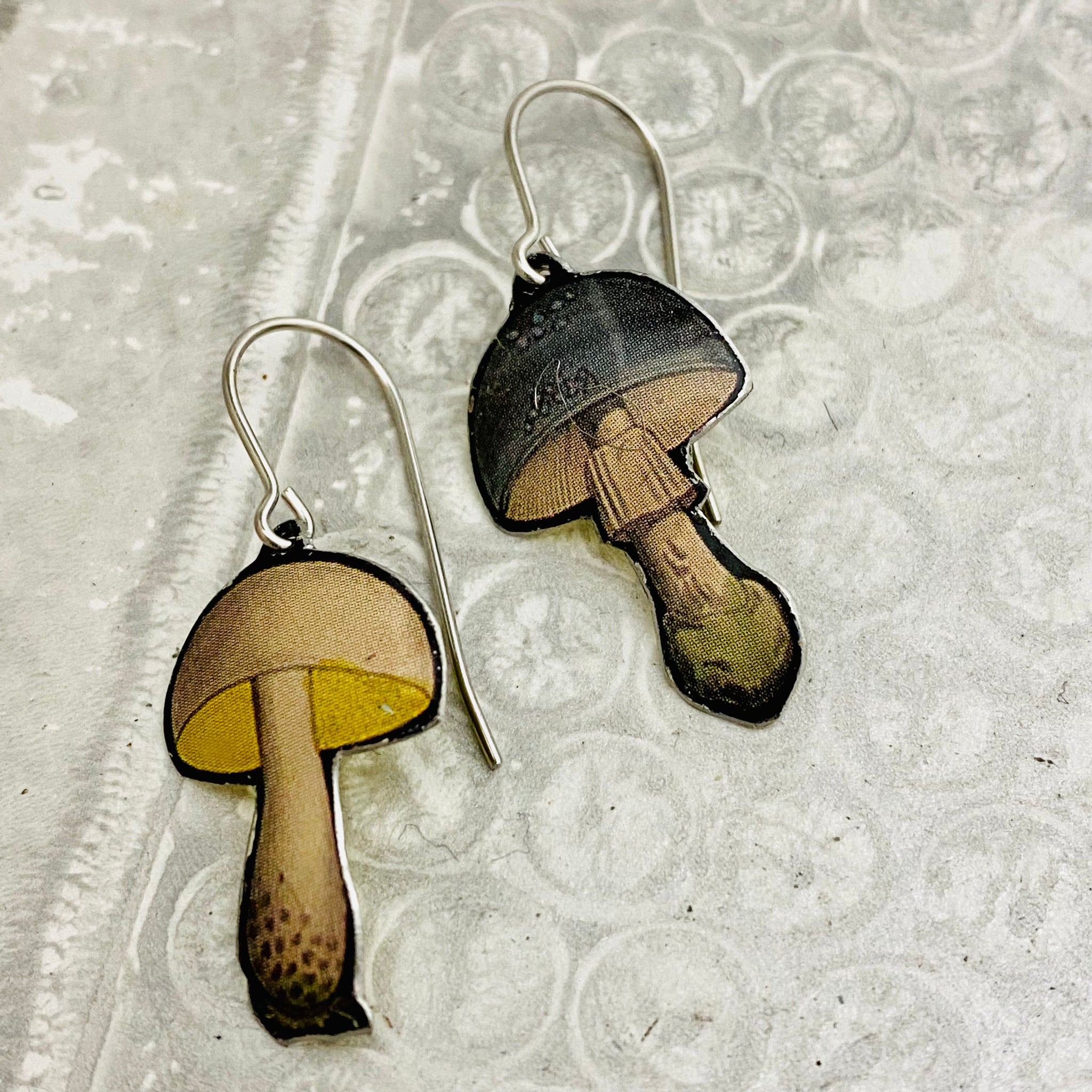 These little mushrooms are from a cool tin tray I found recently. Each piece is hand cut, filed and finished smooth. A surgical stainless steel ear wire finishes the look.
